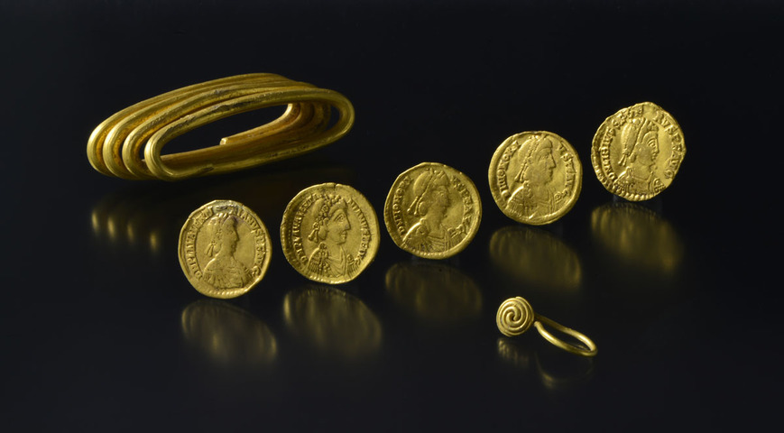 A recent addition to our database is the Gützkow hoard (Germany) consisting of five late Roman gold coins (5th c. AD), found stacked on top of each other and placed inside a solid gold wire together with a golden pendant. This ensemble was published by our German colleagues who sent us their data so that this find could be presented in a larger international context.