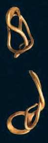 Pair of gold earrings. Circle of smooth thread knotted at the closed riveted eyelet.
