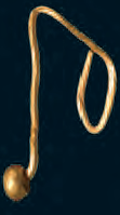 Pendant gold earring. Double curve suspension hook in smooth wire with welded button at the end.