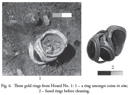 The casket itself had not survived, but the coins and other items inside it were concentrated within an area measuring 22 × 13 cm, which makes it possible to envisage the approximate dimensions of the container.