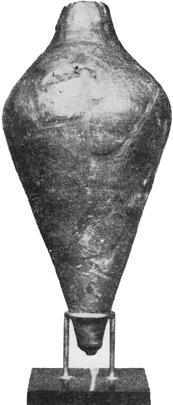 Height: 30 cm; Diameter max. 15 cm; Mouth diameter: 4 cm. Walls thickness: 08-0.10 cm. It is made of fine paste of red-brown colour covered with a red slip. Lost its handles in antiquity. Dating: 2nd century AD