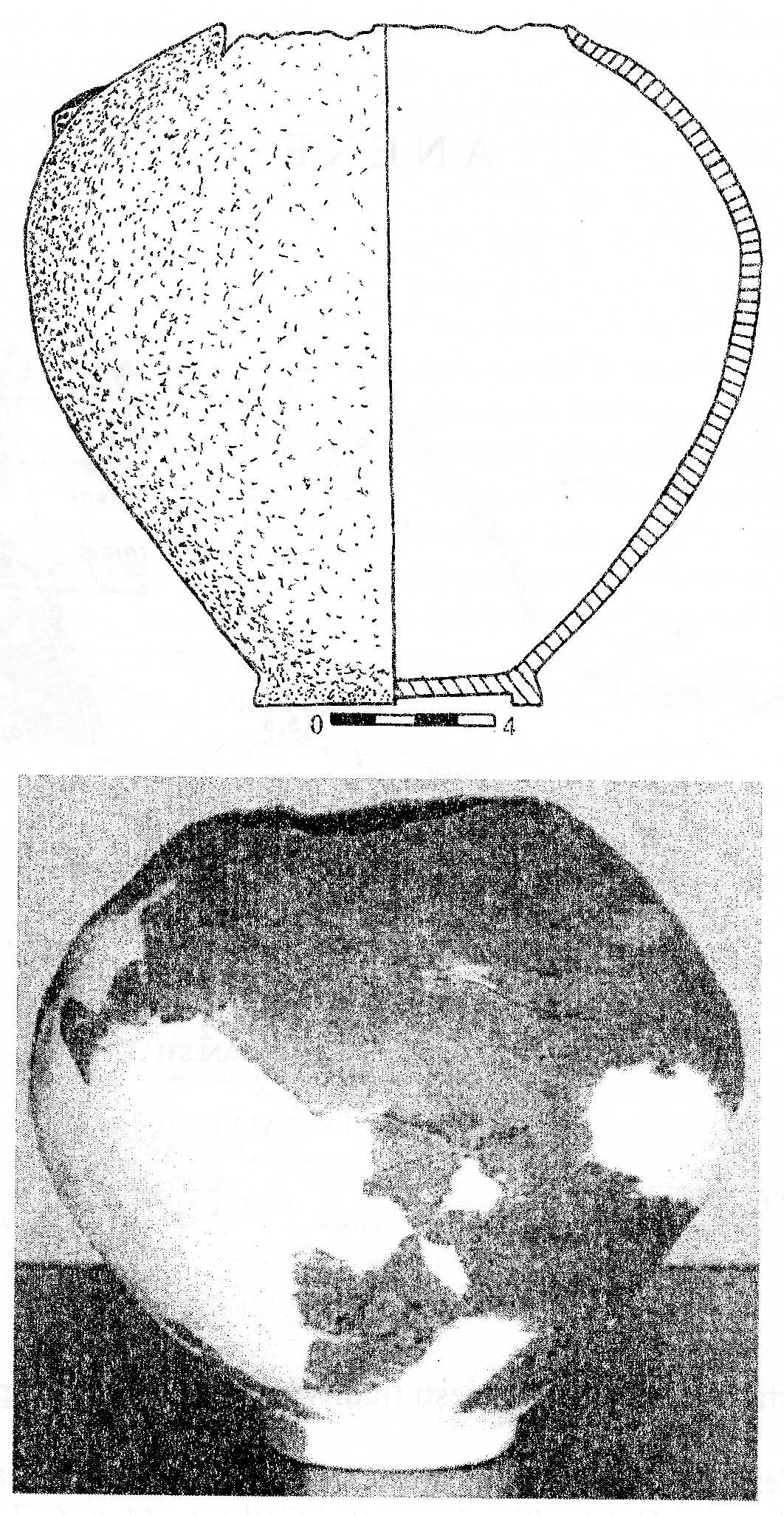 The jug was deliberately broken on the neck. H=16.70cm; Dmax=17.80cm; Dupper = 8.20cm; Dbottom=6.80cm. Grey paste, wheel-made. Type 2, var. C.