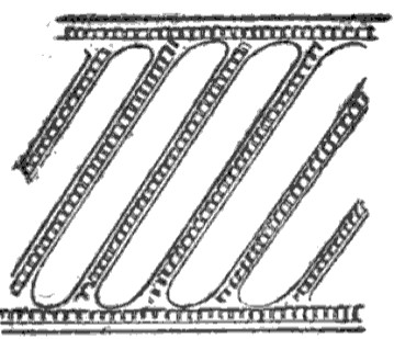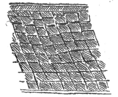 Gold bracelet, in one piece, without traces of soldering. The decoration consists of an oblique flower bed rounded at its ends and bordered with small pearls. This flower bed is repeated thirty times around the bracelet. The upper and lower borders are formed by a line of beads between two grooves. The decoration is carried out on repoussé; on the reverse side, the pearls forming the pattern have the appearance of small squares, while on the other side they appear rounded.