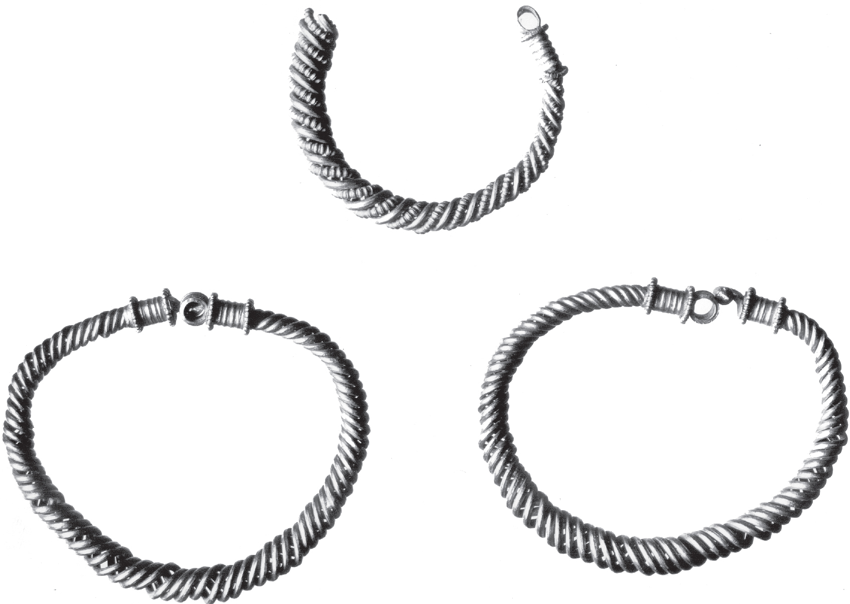 Bracelets, made out of pliant golden wire. One is in a fragmentary state of preservation