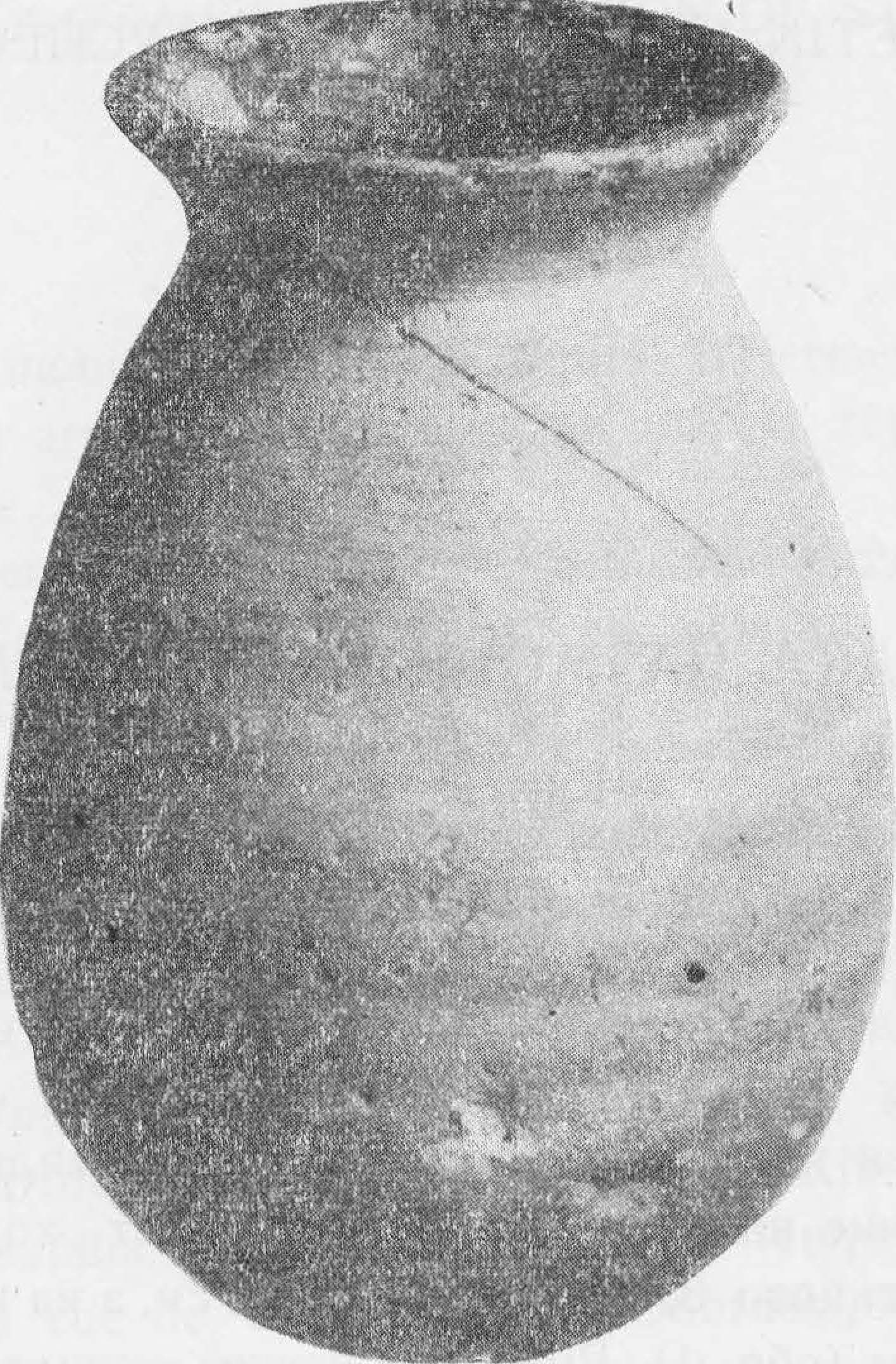 The vessel is of a pale red color, flat bottom, pear-shaped, narrow and short neck, horizontal mouth with an outward extension. It is decorated with nine horizontal concave circles. Height: 83 mm, diameter at the bottom: 34mm, at the mouth 44 mm, and at the most prominent part of the body 6 cm, thickness of the walls 0.4 cm. Instead of a lid, its mouth was covered with four bronze medallions minted in Philippopolis.