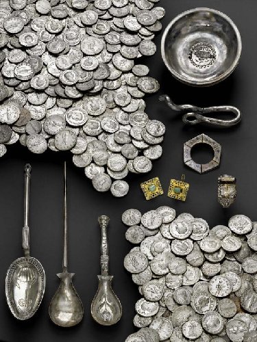 A copper-alloy vessel, in which silver fragments associated with the hoard were found. The vessel measured 23.5cm in diameter and 11cm in height. It was made out of sheet metal. The workmanship suggests a skilled metalworker.