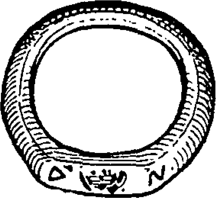 Silver ring, bulging externally, decorated with a masculine head in profile, between the letters S and Δ..