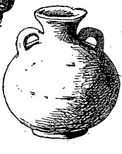 The vase has an almost a spherical body, surmounted by a chunky neck and furnished with two small lateral handles. Reddish paste. Coated with a dark red varnish. H: 12 cm