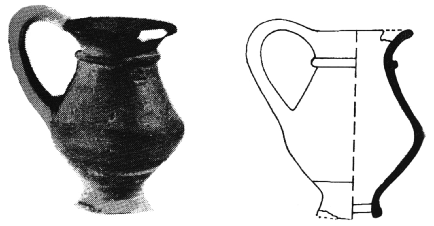 Grey paste of good quality. Wheel made. The rim is slightly turned outwards, lower shoulder, a ring foot, and over height handle. One rib on the neck. Height: 11.2 cm; Maximum diameter: 8 cm Typical Dacian pottery. Dating: 2nd century BC -1st century AD